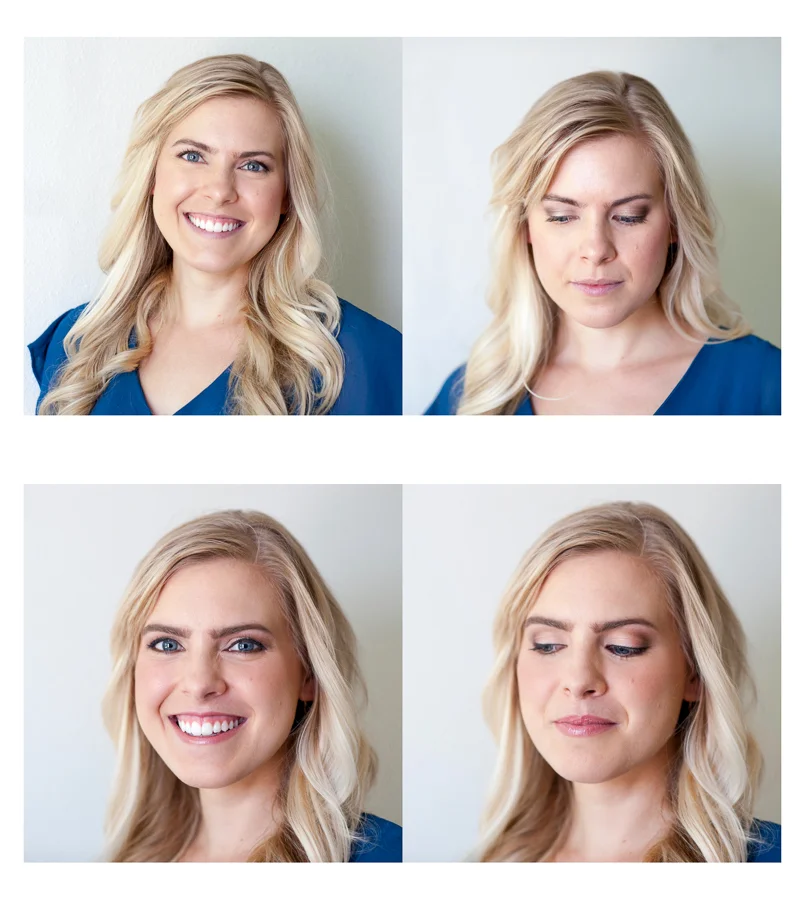 Lets talk about a few things that a makeup artist can help you with. Foundation and concealer, are two of the main problem areas that can show up on camera. When the color is off or not blended well, it can be very noticeable and is something that can be a real issue for photographers to blend after the fact. Blush and lip color are also super important. Blush is easily washed out by either strobes or the sun, leaving you looking pale. Your artist may add more blush than normal for your portrait session to fix this, but don't worry you won't look like a clown. Lip color, as you can see, makes quite a difference dry chapped lips are almost impossible for photographers to correct in retouching. Just add a gloss or lip balm and this will quickly smooth out the problem.
